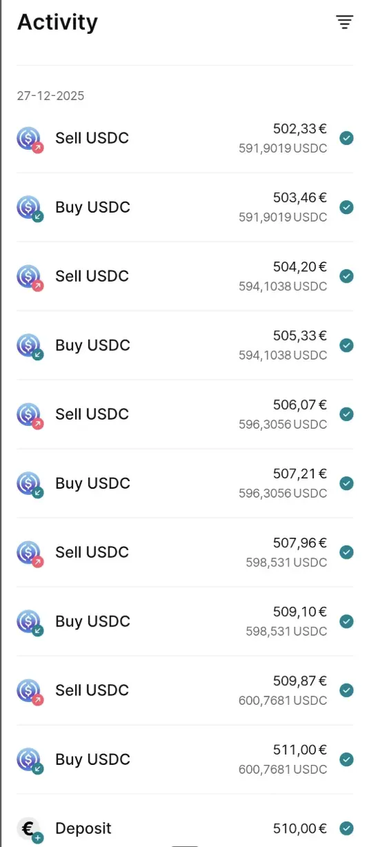 💡 Consiglio: Finst applica una commissione fissa dello 0.15%. Per raggiungere il volume di 5.000€ con il minimo di commissioni, puoi scambiare stablecoin o Bitcoin, assicurandoti di monitorare il totale nella sezione "Transazioni".