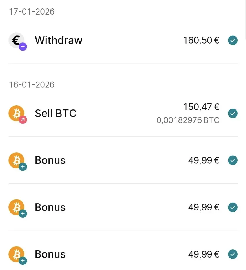 5. Ricezione Bonus: Se avrai completato tutto entro il 28/02, riceverai i 50€ in Bitcoin all'inizio di marzo.
